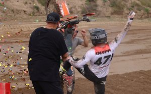Henry Herzog duellierte sich in der Qualifikation der MX2 125ccm-Klasse mit Malthe Degn um Startplatz eins im Startgrid. Nach Ablauf der Zeit absolvierte Herzog mit 46-Tausenstel-Sekunden den Track schnellster als Degn und holte die Pole. Dahinter fuhren Bosse Martensson, Lasse Weber und Loris Wobker die weiteren Startplätze ein. Im ersten Wertungslauf führte Herzog das Rennen acht Runden lang an, bevor Degn, die Spitze übernahm und sich den Laufsieg eindrucksvoll schnappte. In Durchgang zwei mussten alle angereisten Zuschauer Nerven haben, da sich Herzog und Degn bis in die letzte Runde duellierten. Am Ende sicherte sich der konstanteste Mann der Saison, Henry Herzog, den Sieg vor Degn und Weber. In der Tageswertung feierte Herzog den Saisonerfolg und setzte sich gegen Degn und Weber durch. Neuer NMX-Champion in der 125ccm-Klasse ist Herzog.