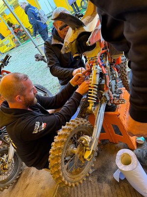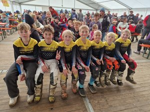 In der Klasse 65ccm war Mikkel Zankel der Hoffnungsträger, konnte das im Training mit der drittschnellsten Zeit auch bestätigen. Im Halbfinale wurde dann am Start erst einmal der Motor abgewürgt, um mit einer furiosen Aufholjagd noch auf Rang drei vorzufahren. Aus der zweiten Gruppe kamen Finn Böckmann, Ole Agel und Tim Müller ins Finale. So standen vier Kandidaten von uns im Finale der besten 40. Für Mikkel lief es dort nicht nach Plan. Er musste nach verpatztem Start und einem Sturz wieder von ganz hinten anfangen, fand nicht mehr seinen gewohnten Rhythmus und Platz 17 war nicht das, was er sich vorgenommen hatte. Ganz anders lief es für Finn. Nach einem guten Start und einer tollen Fahrt sollte er, mit Platz sieben, das beste Mannschaftsergebnis für das Team einfahren. Auch Ole und Tim kämpften sich tapfer durch die mittlerweile immer schwieriger werdende Strecke und kamen auf Rang 29 und 31 ins Ziel.